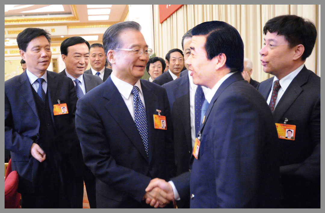時任中央政治局常委、國務院總理溫家寶與楊建忠董事長親切握手